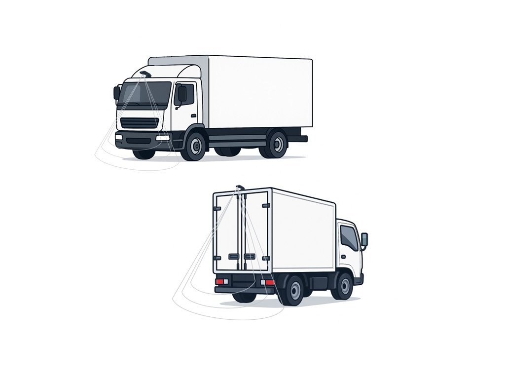 Řešení problému: špatný výhled před přední část nákladního vozu či dodávky a následnému přehlédnutí například chodce či cyklisty, nebo když na zadní dveře nelze jen tak namontovat couvací kameru.
