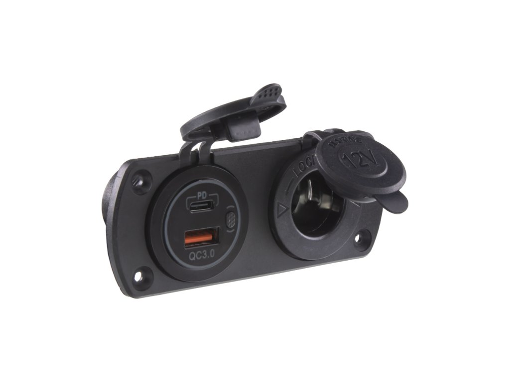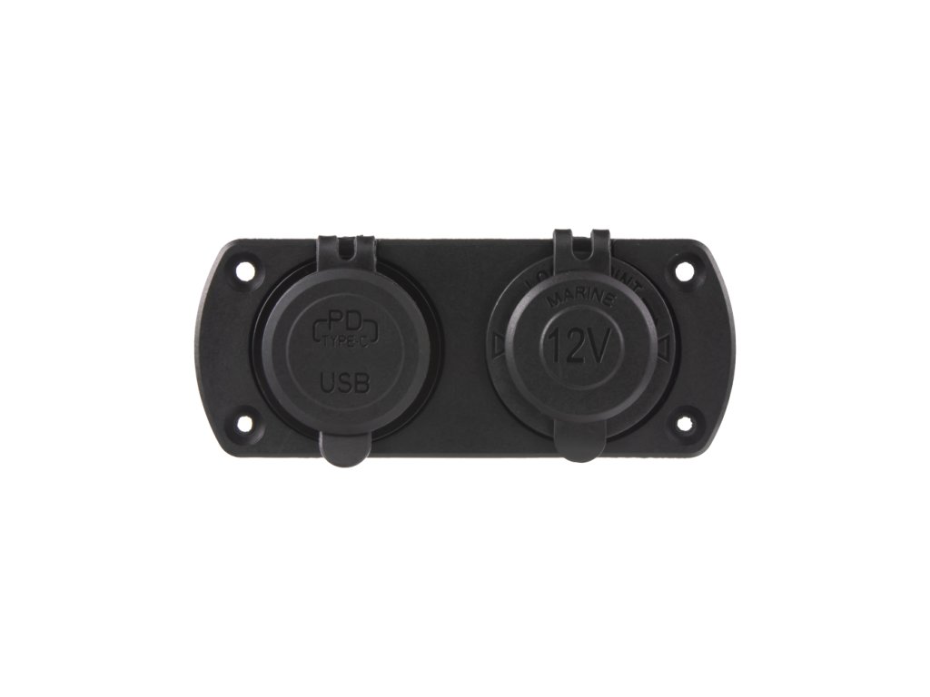 Dvojitá zásuvka do panelu 1x CL (max. 20 A) + 2x nabíječka USB voděodolná.