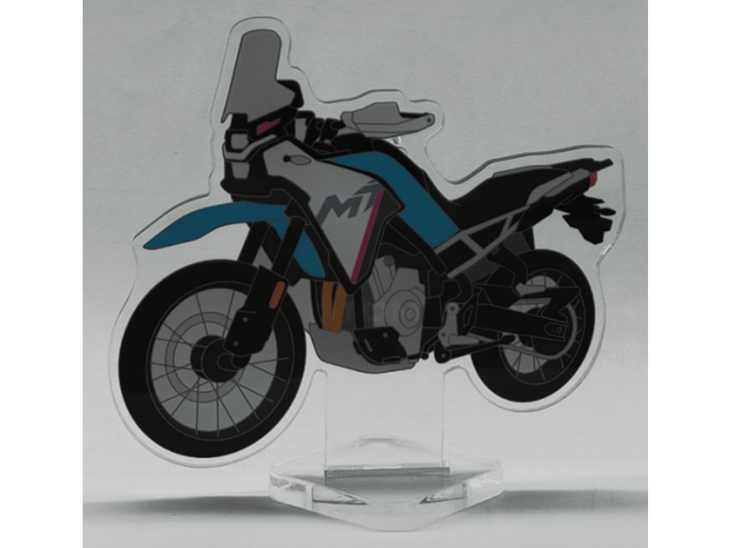 Dekorativní stojánek s motivem motocyklu CFMOTO 450MT. Do klipu na zadní straně je možné upnout fotky nebo poznámkové lístečky. Materiál: 3 mm silný průhledný akrylát s potiskemBuďte první, kdo napíše příspěvek k této položce.