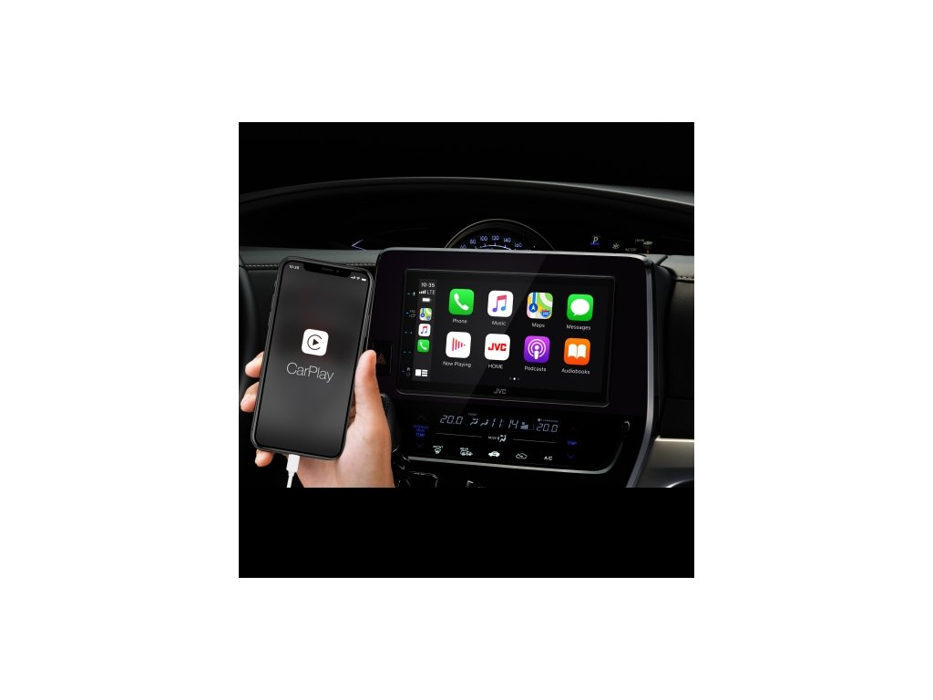 S multimediálním přijímačem JVC se věci ještě lépe - prostě promluvte se Siri nebo se dotkněte displeje přijímače a získáte pokyny z aplikace Apple Map, telefonujte, poslouchejte hlasovou schránku, posílejte a přijímáte texty a poslouchejte hudbu všemi způsobem, který vám umožňuje zůstat soustředěný na silnici.