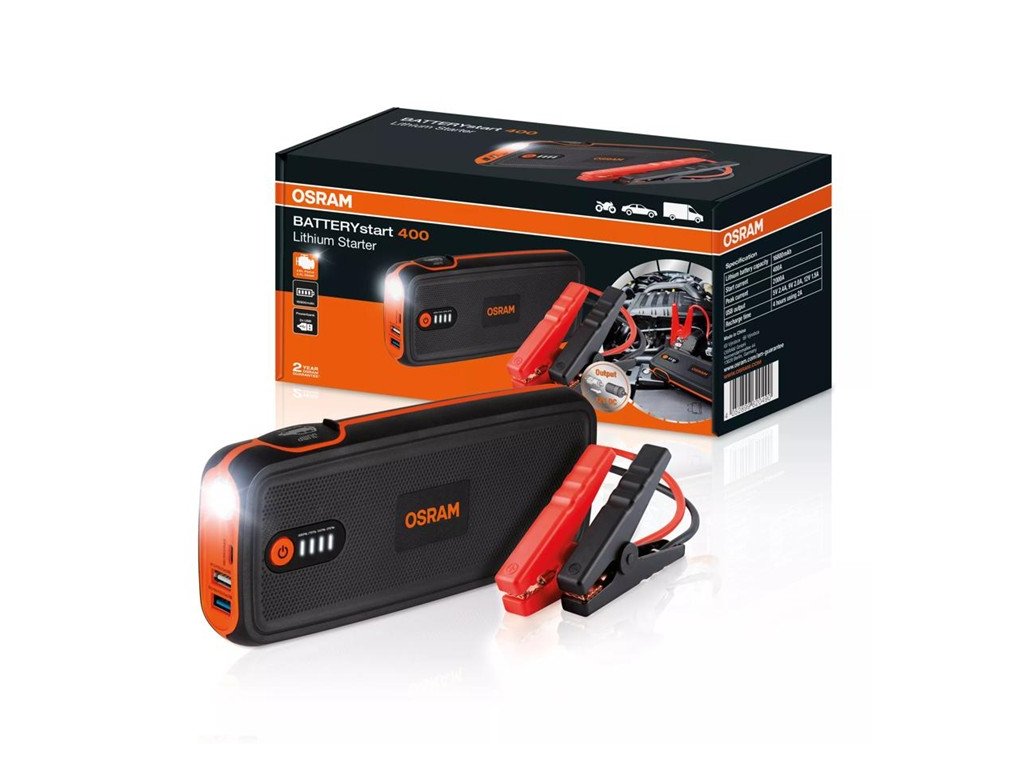 Kompaktní a výkonný lithiový startér s funkcí powerbanky OSRAM BATTERYstart 400 je vysokovýkonný startovací lithium-kobaltový LiCoO2 pro 12 V vozidla do 8 l s benzínovými motory a 4 l s naftou.