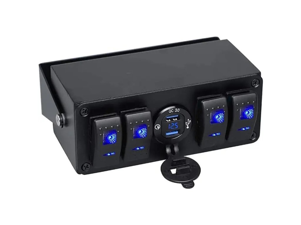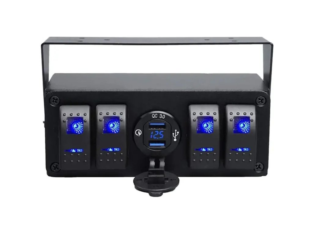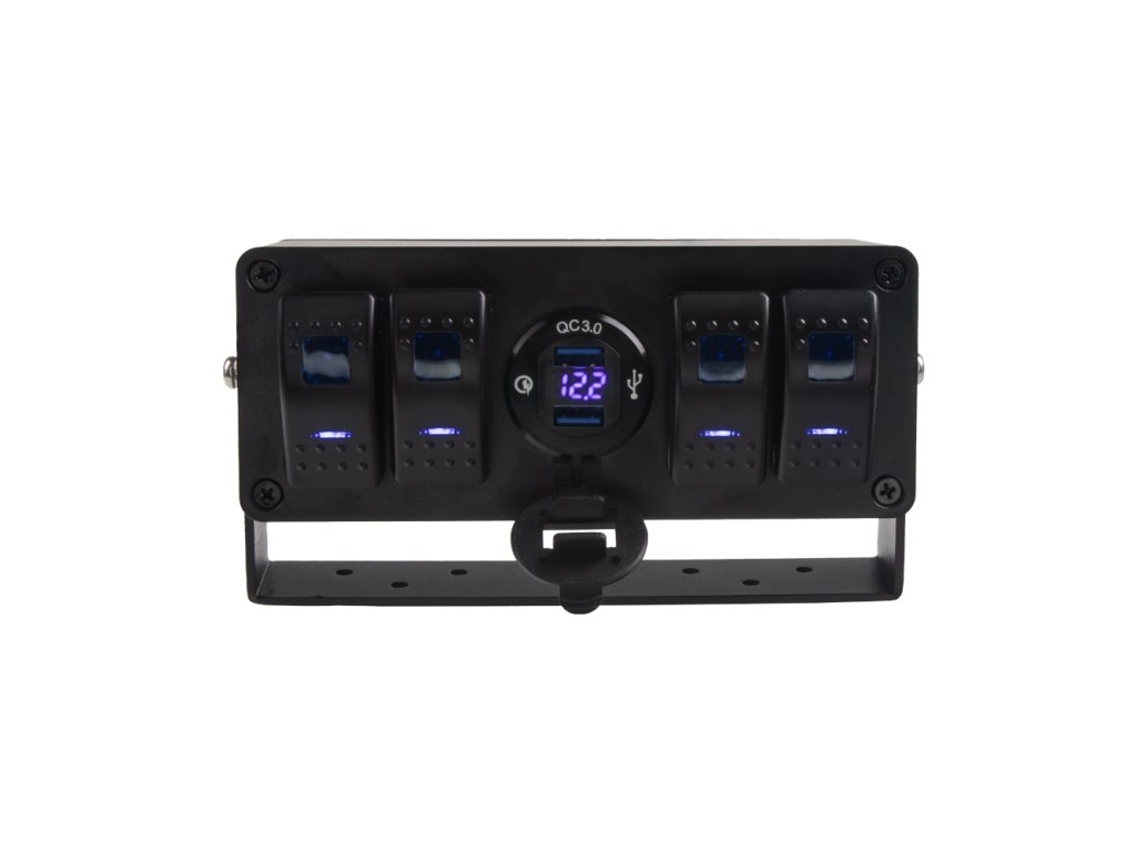 Panel (box) s 4x spínači Rocker a 2x USB zásuvkou s voltmetrem.