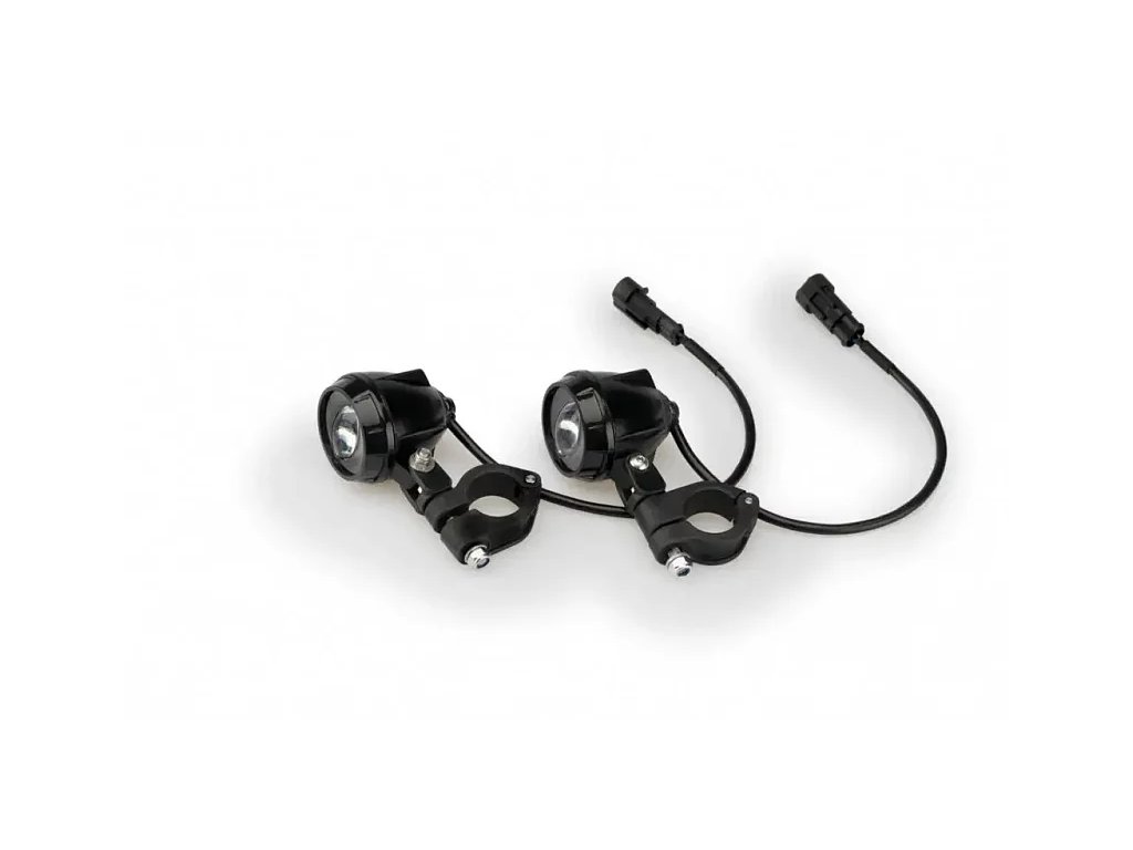 Sada dvou homologovaných přídavných LED světlometů do tmy, mlhy, deště nebo sněhu. Díky kompaktním rozměrům, modernímu designu a instalační objímce o průměru 25 mm dokonale pasují například na horní padací rám motocyklu CFMOTO [450MT](http://eshop.journeyman.cz/produkt/450mt-horni-padaci-ramy/) nebo [800MT-X](http://eshop.journeyman.cz/produkt/800mt-x-horni-padaci-ramy/). Lze je instalovat i na ochranné rámy a nosiče nejrůznějších čtyřkolek, UTV a SSV. - Součástí balení je instalační sada s objímkou o průměru 25 mm - Pojistka a kabeláž pro přímé připojení k baterii a vodotěsný spínač na řídítka - Ochrana proti zamlžování - Tělo z černě lakovaného hliníku navržené pro optimální odvod tepla - Světelný tok jednoho světla: 1000 LM - Spotřeba jednoho světla: 15 W - Napětí: DC 12VBuďte první, kdo napíše příspěvek k této položce.
