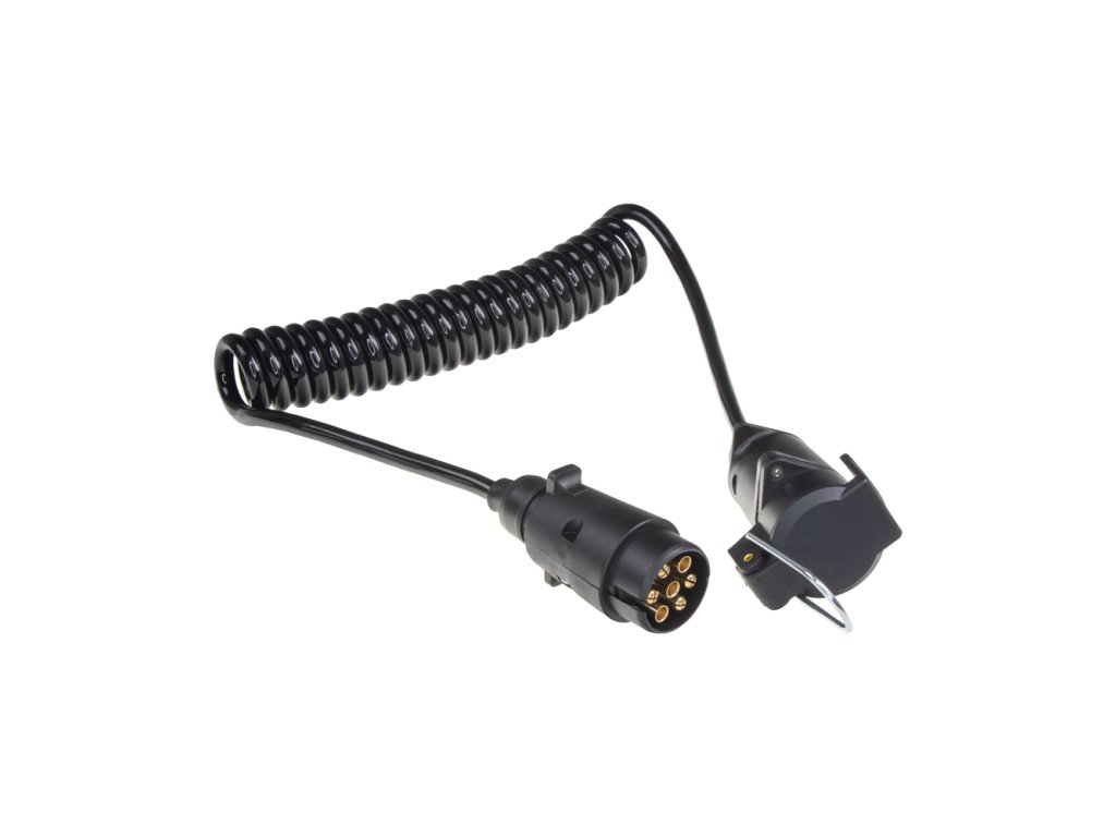 Praktický propojovací spirálový kabel, zakončený 1x zástrčkou + 1x zásuvkou 7pin / 12 V.