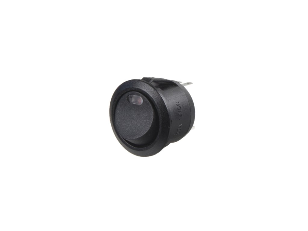 Spínač kolébkový kulatý 20 A červená LED kontrolka, průměr otvoru 20,2 mm, pro napájecí napětí 12 V.