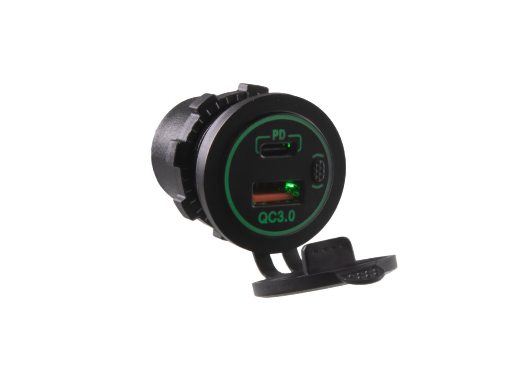 USB nabíječka do panelu, QC3.0 + USB-C, s krytkou proti prachu a vlhkosti.