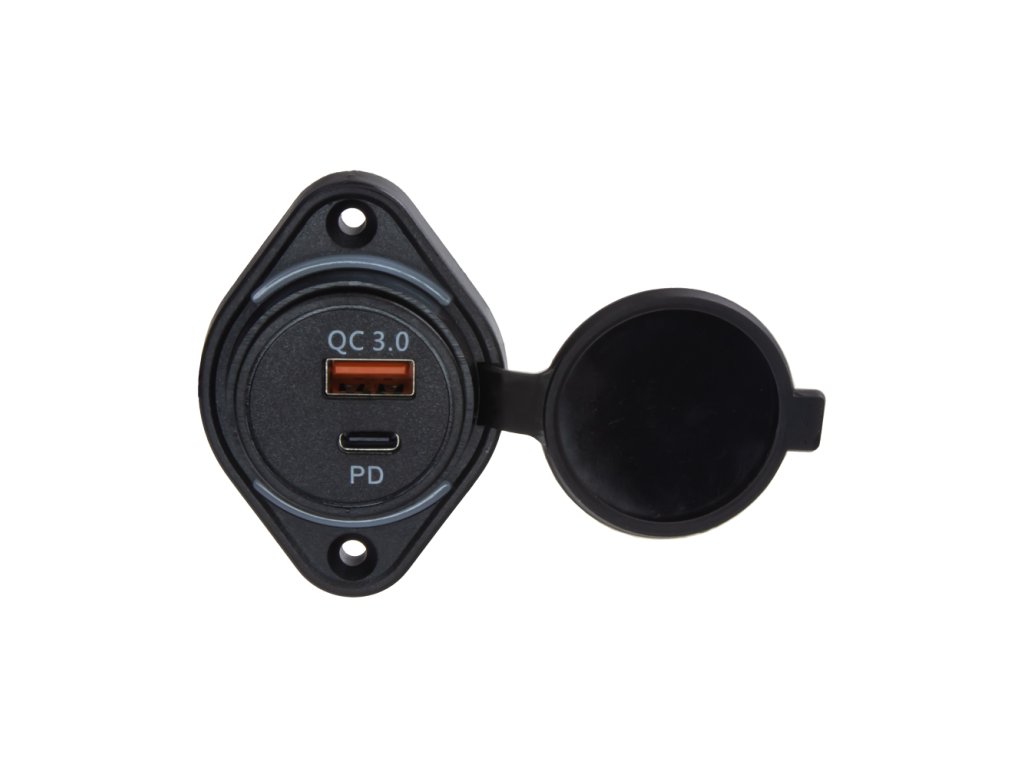USB QC3.0 + USB-C zásuvka 12/24V, montáž na povrch